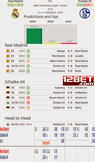 Unggul 1-6 dalam leg pertama lawan Schalke, Real Madrid rasanya tak akan kesulitan untuk bisa menang dalam pertandingan ini. C Ronaldo dkk diprediksi akan menang dengan selisih dua gol.